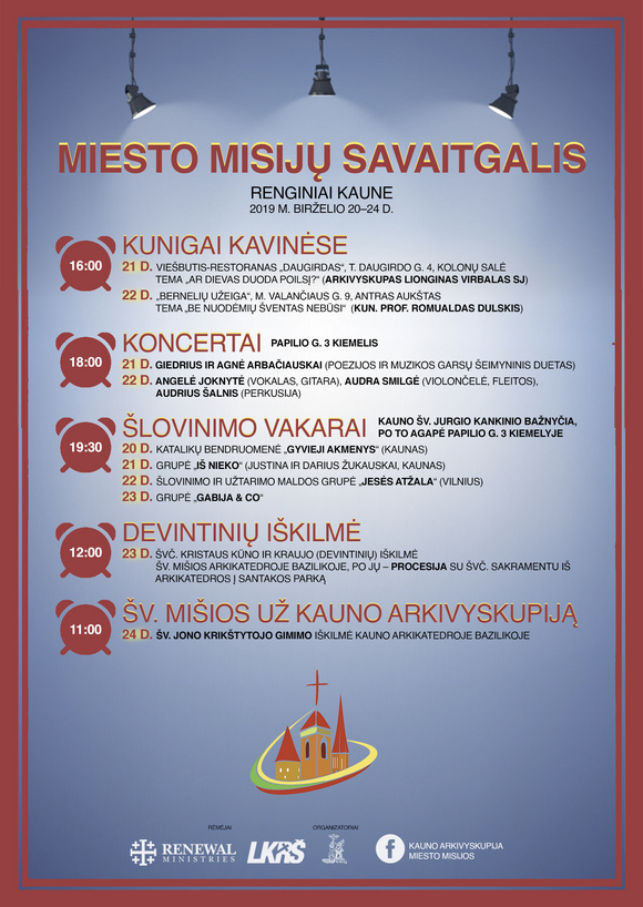 Ir šiais metais su tikėjimo, džiaugsmo ir bendrystės žinia Kauno arkivyskupija kviečia į MIESTO MISIJŲ SAVAITGALĮ Kaune birželio 20–24 d. Jo programa – susitikimai kavinėse, koncertai, šlovinimo vakarai – vyksta senamiesčio erdvėse, yra atviri ir nemokami – juose laukiamas kiekvienas!