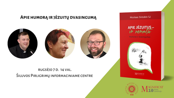 14 val. Piligrimų informacijos centre Šiluvoje vyks Nikolaas Sintobino SJ knygos „Apie jėzuitus – ir nerimtai. Humoras ir dvasingumas“ („Magnificat leidiniai“) pristatymas. Dalyvauja: kun. Eugenijus Puzynia, kun. Mindaugas Malinauskas, Jūratė Grabytė. Kviečia „Magnificat leidiniai“ .