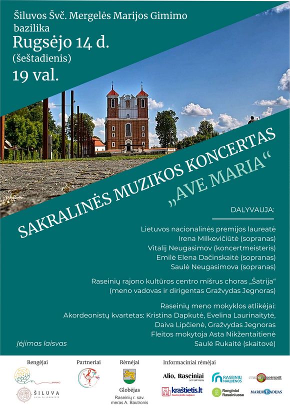 19 val. Sakralinės muzikos koncertas „Ave Maria“.
