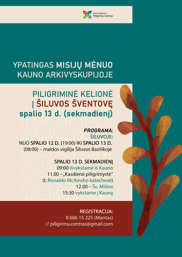 Spalio 13 d. keliaukime į Šiluvą su Jono Pauliaus II piligrimų centru