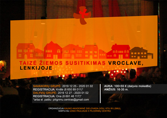 Jaunimas nuo 16 iki 35 metų kviečiamas keliauti į Taizé organizuojamą Europos jaunimo žiemos susitikimą Vroclave 2019 m. gruodžio 27 d. – 2020 m. sausio 2 d.
