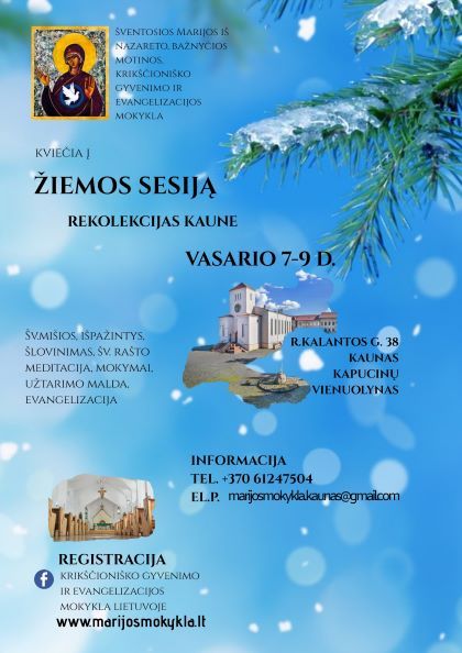 Vasario 7–9 d. Krikščioniško gyvenimo ir evangelizacijos mokykla kviečia į žiemos sesiją (rekolekcijas) Kaune