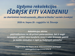 Liepos 29 – rugpūčio 1 d. Ugdymo rekolekcijos „Išdrįsk eiti vandeniu“