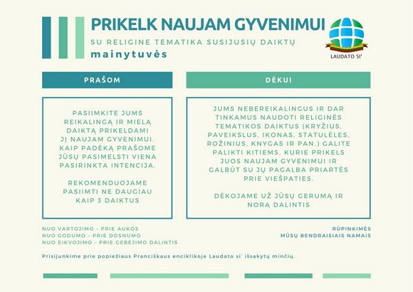 Palaikykime ir įsijunkime į Kauno arkivyskupijos sielovados bendradarbių iniciatyvą drauge žengdami dar vieną žingsnelį link dovanojimo ir dalijimosi, tausojimo ir saikingumo kultūros puoselėjimo.