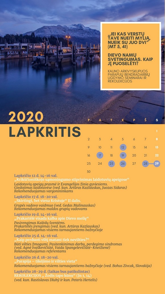 Lapkritį tęsiamas arkivyskupijos kurijos sielovados projektas, skirtas parapijų bendradarbių ir aktyviai įsitraukusių į bažnyčių veiklą ugdymui tema „Dievo namų svetingumas. Kaip jį puoselėti?“