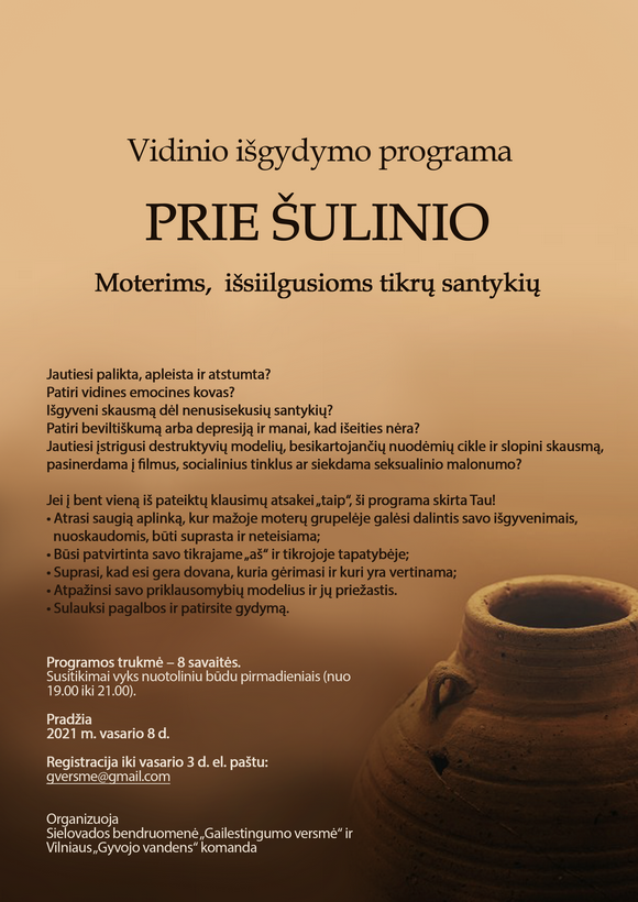 Sielovados bendruomenė „Gailestingumo versmė" kviečia į Vidinio išgydymo programą moterims „Prie šulinio" nuo vasario 8 d. nuotoliniu būdu.