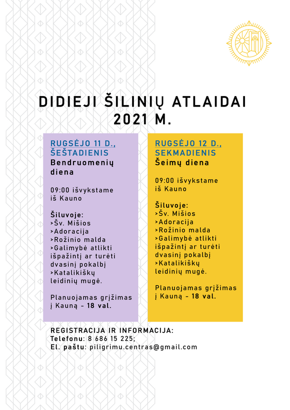 Kauno arkivyskupijos Jono Pauliaus II piligrimų centras kviečia kartu vykti į Šiluvos atlaidus. Organizuojami autobusai iš Kauno rugsėjo 11 ir 12 d.