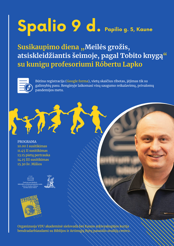 Spalio 9-ąją, šeštadienį, Šeimos-Amoris laetitia metų džiaugsmą ir tematiką atlieps Susikaupimo diena „Meilės grožis, atsiskleidžiantis šeimoje, pagal Tobito knygą“ Kaune (Papilio g. 5).