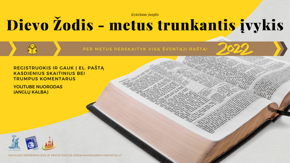 Per visus 2021-uosius daugiau kaip 2 tūkstančiai žmonių Lietuvoje priėmė iššūkį – atsiliepė į kvietimą per metus perskaityti visą Šventąjį Raštą. Iššūkis tęsiasi – kviečiame naujus narius ir tuos, kurie galbūt sustojo pusiaukelėje, priimti artėjančių metų iššūkį – perskaityti visą Šventąjį Raštą per 2022-uosius!