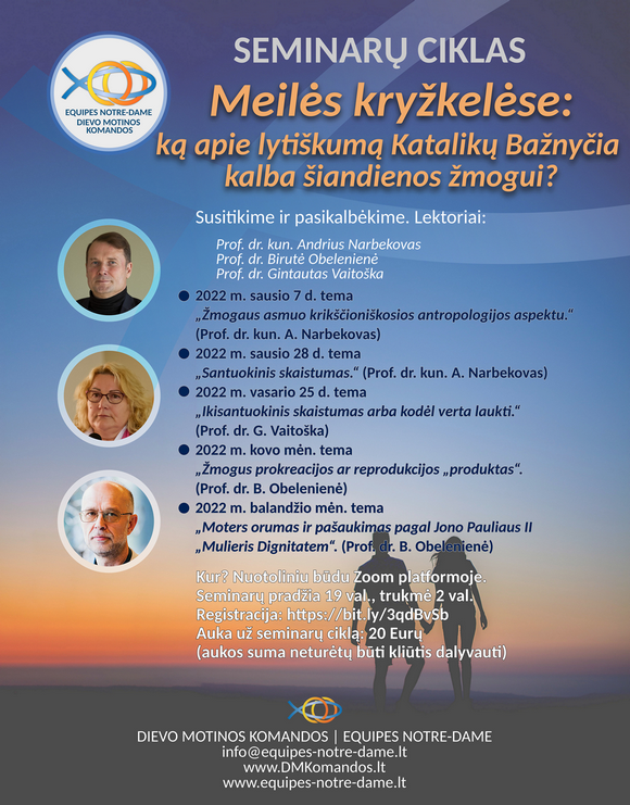 Atsiliepdami į visuomenėje vis iškylančius lytiškumo klausimus, Dievo Motinos komandų judėjimas rengia nuotolinių susitikimų ciklą „Meilės kryžkelėse: ką apie lytiškumą Katalikų Bažnyčia kalba šiandienos žmogui“ ir kviečia dalyvauti jame ne tik sutuoktinius, bet ir visus besidominčius.
