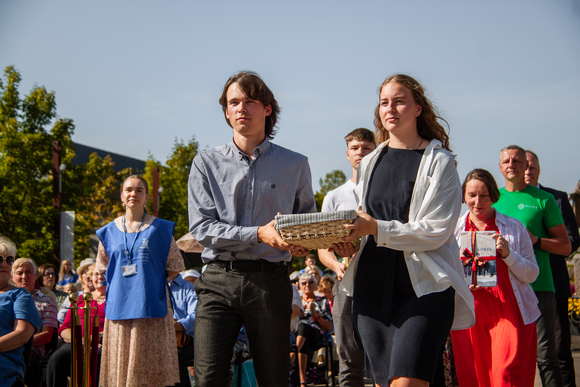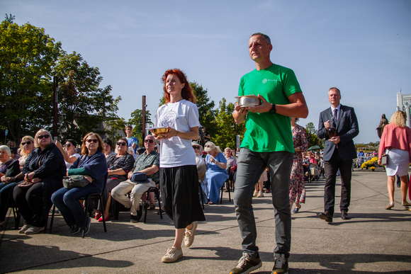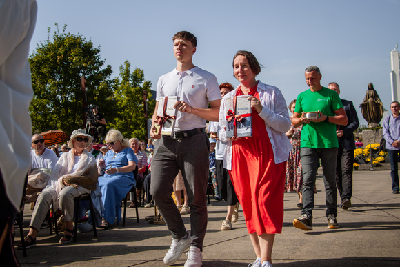 Atnašų procesijoje prie altoriaus dalyvavo jaunimas ir šeimos. Buvo atnešti maldos lapeliai už taip svarbius Bažnyčiai pašaukimus, taip pat naujausia knyga apie Šiluvos istoriją tėvams ir vaikams „Lobis. Slapta kelionė į Šiluvą“ (kasdien Šiluvoje vyksta jos pristatymai) bei duonos ir vyno atnašos.