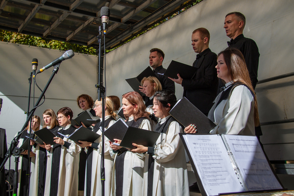 Giedojimo estafetę, kurią kasdien atlaiduose perimdavo vis kiti chorai, ansambliai iš visos Lietuvos, šią Padėkos dieną tęsė Kauno sakralinės muzikos mokyklos mokytojų ansamblis „Cantores Urbis“, Švč. Mergelės Marijos Sopulingosios iškilmėje sugiedojęs sekvenciją „Stovi Motina skausminga“.