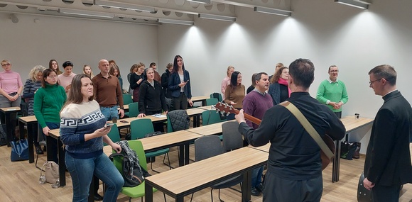 Susitikimas buvo pradėtas giesme, kviečiančia Šventąją Dvasią. Tada kunigas teol. lic. Andrius Končius, kuris veda šiuos susitikimus, pristatė pirmąją temą „Dievo patirtis mūsų gyvenime“.