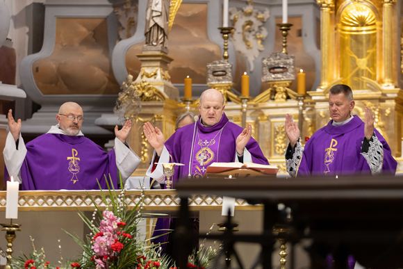 Vakaro Eucharistijai vadovavo augziliaras vyskupas Saulius Bužauskas. Jis homilijos metu pasidalijo mintimis, ko galime pasimokyti iš apaštalo Judo patirties, palygindamas apaštalų Judo ir Petro išdavystes, pakvietė tikinčiuosius būti ištikimus Dievui ir Bažnyčiai.