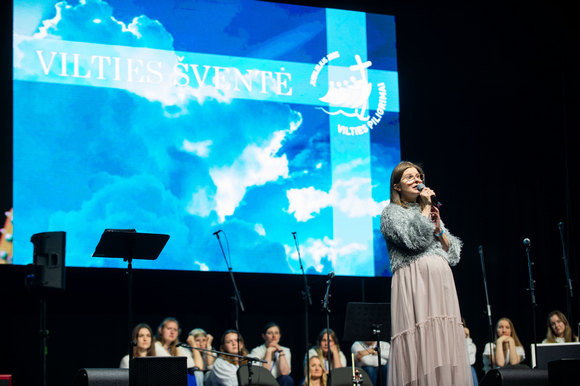 „Garbė Jėzui Kristui!“ – šitaip džiaugsmu alsuojančią halę pasibaigus Eucharistijos liturgijai pasveikino visų mylimas ir žinomas Linas Adomaitis, kartu su chorais „Dangi“ ir „Dangiukai“ bei jų vadove Danguole Beinaryte dovanojęs žmonėms šviesos ir vilties kupiną koncertą.