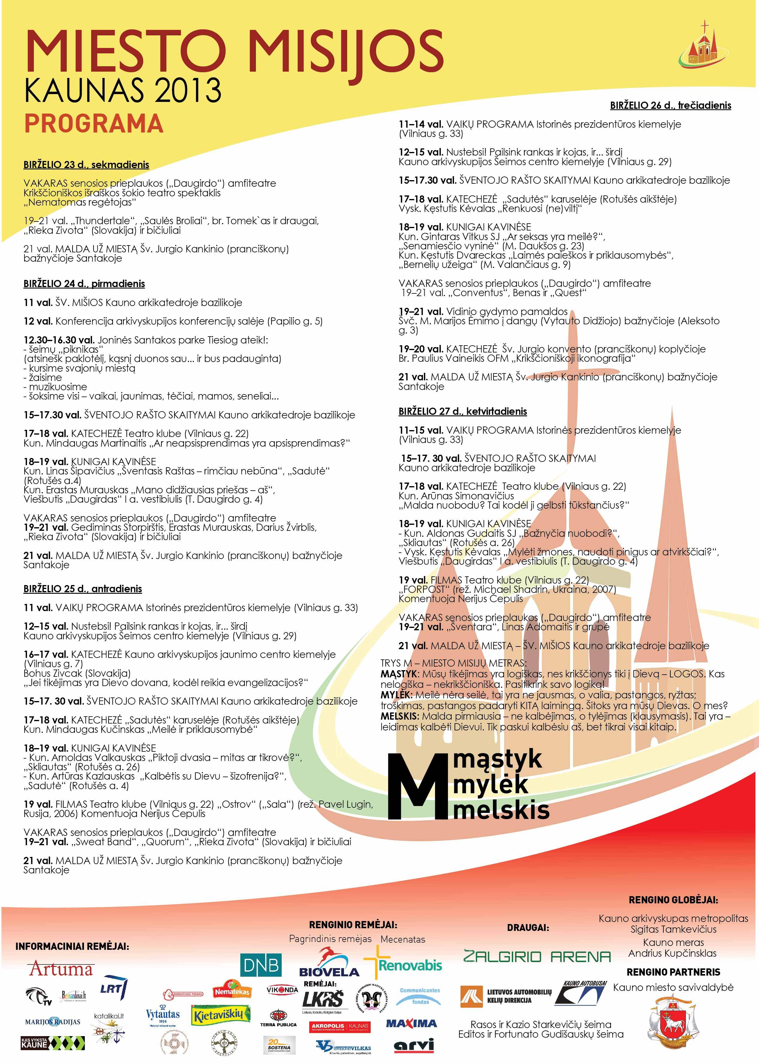 Paskutinį birželio savaitgalį – 28–30 dienomis – Kaune į didžiausią katalikiško jaunimo susitikimą suvažiuos tūkstančiai Lietuvos jaunimo dienų dalyvių. Prieš joms prasidedant Kaune nuo birželio 23 iki 27 d. rengiama Miesto misijų savaitė. Jos idėją prieš dešimtmetį iškėlė penkių Europos šalių kardinolai, nutarę rengti tokias evangelizacines savaites vis kitame Europos mieste (ir jau vyko Vienoje, Paryžiuje, Lisabonoje, Bratislavoje ir kt).