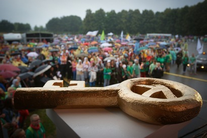 Susirinkusius Santakoje sveikino Kauno arkivyskupas metropolitas Sigitas Tamkevičius, linkėdamas pačių geriausių įspūdžių šiomis dienomis. Ganytojas priminė, kad prieš 20 metų, kai Lietuvoje lankėsi popiežius Jonas Paulius II, galima sakyti, pradėjęs jaunimo susitikimų tradiciją Lietuvoje, lijo dar smarkiau, tačiau žmonės neišsigando – juos vienijo tikėjimas.