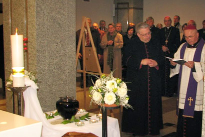 Atsisveikinimo žodį Kristaus Prisikėlimo bažnyčioje, prieš palaidojant urną kolumbariume, tarė vysk. Jonas Kauneckas, taip pat kalbėjo Ateitininkų šalpos fondo pirmininkė Laima Šalčiuvienė (išsamiau žr. www.prisikėlimas.lt >>).