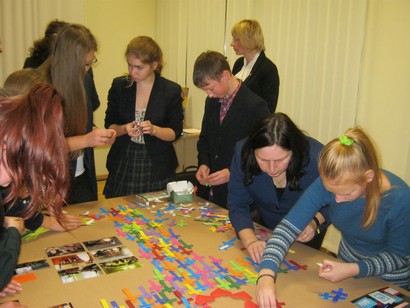 Lapių pagrindinės mokyklos tikybos vyr. mokytoja Jolanta Obolevičiūtė papasakojo apie Tikėjimo metų istoriją ir simbolius bei paaiškino, ką mes turėsime nuveikti šiame renginyje. Tada visi kibome į darbus. Kiekviena mokinių grupė atsivežė po dešimt savo veiklos bažnyčioje nuotraukų, iš kurių darėme didelį koliažą. Koliažo viduryje klijavome mažus, spalvotus kryželius, kuriuos pagamino Lapių pradinės mokyklos mokiniai. Iš mažų kryžiukų padarėme didelį kryžių, o aplink jį suklijavome visas mokinių atsivežtas nuotraukas.