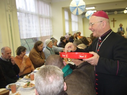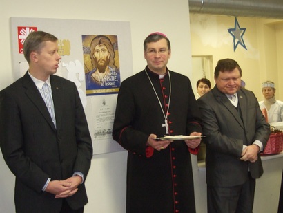 Su „Sriubos“ valgyklos lankytojais, meilės stokojančiais, išgyvenančiais fizinį ir dvasinį nepriteklių, pasidalyti džiaugsmo ir vilties žinia, kurią kiekvienam žmogui dovanoja šiąnakt dievišku Kūdikiu į pasaulį nužengsiantis Viešpats, atvyko Kauno arkivyskupas metropolitas Sigitas Tamkevičius SJ, vyskupas augziliaras Kęstutis Kėvalas, Kauno I dekanato dekanas mons. Vytautas Grigaravičius, Lietuvos Caritas generalinė direktorė Janina Kukauskienė, arkivyskupijos Caritas direktorius kun. Virginijus Birjotas, reikalų vedėja ses. Viktorija Maknauskaitė SJE, I dekanato Caritas vadovė Onutė Virbašiūtė, Šv. Antano Paduviečio parapijos klebonas kun. Vytenis Vaškelis.