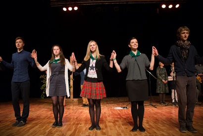 Jį, prieš prasidedant dviem konferencijoms, netrukus ir pašlovino giesme kartu su savo bendraamžių šlovintojų grupe jaunieji renginio dalyviai.
