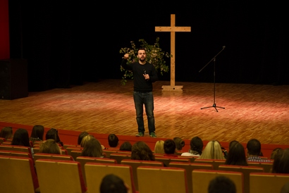 Atvirą, drąsų ir uždegantį žodį jaunimui (beje, lietuviškai) tarė svečias Luca Demarco, jaunos šeimos dviejų vaikų tėvas, gyvenantis Lietuvoje. Jis papasakojo savo atsivertimo istoriją. Gyvenimo vertės, prasmės klausimai jam kilo po sunkios traumos profesionaliame sporte. Būdamas labai jaunas, lyg tol šėliojantis vaikinas ėmė rimtai ieškoti atsakymų, ir šių atsakymų klausė paties Dievo. Dievas, kaip liudijo, labai greitai atsiliepė. „Išskirtinė laimė turėti protą“, – šmaikštavo jaunasis italas, labai nuoširdžiai tiesiog pamokydamas jaunus žmones, kaip bendrauti (netgi rengtis), kad nebūtum kito išnaudojamas, išsaugotum ir gerbtum savo ir kito orumą, kaip atpažinti vaikinų ir merginų prigimties, elgesio skirtingumus, nusiimti rožinius akinius bendraujant su priešinga lytimi. Kalbėdamas apie lytinius santykius iki santuokos, Luca Demarco ragino jaunimą neskubėti bendrauti fiziškai, o pirmiau suvokti moterų ir vyrų prigimtinius skirtumus, trokšti pažinti kitą ne tik fiziškai, gryninti santykius iki skausmo. Antroji pusė žmogui yra Dievo padovanojama, tad Jis dalyvauja šiame „meilės trikampyje“, tik santuokinėje bendrystėje galima atrasti ir tikrą džiaugsmą pažįstant kito žmogaus gilumą.