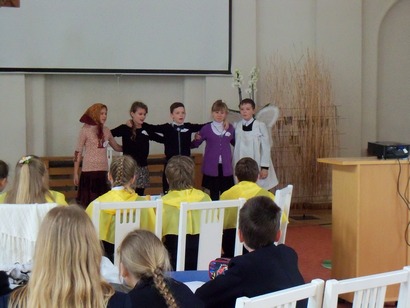 Kol komisija tikrino atliktas užduotis, diskutavo apie mokinių piešinius ir Šventojo Rašto istorijų atvaizdus juose, skaičiavo balus, mokiniai linksmai vaišinosi saldžiaisias užkandžiais ir nekantriai laukė rezultatų.