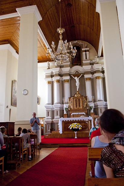 Įsidienojus Daugų ežero skaidrūs vandenys atgaivino daugelio keliautojų jėgas, ypač maudynėmis džiaugėsi mažiausieji. Susidomėję klausėmės p. Eugenijos pasakojimo apie Alytaus Šeimos centre Santuokai ruošiamus sužadėtinius. Supratome, kad patirties sklaida leidžia geriau suprasti, ką darome, įsivertinti, pasimokyti ir eiti į priekį. Toliau tęsėme kelionę į Pivašiūnus. Klebonas kun. Vincas Baublys prikaustė mūsų dėmesį įdomiu pasakojimu apie šventovę, jos istoriją, suklusę prie Švč. M. Marijos Nuliūdusiųjų Paguodos paveikslo drauge meldėmės ir giedojome. Tikriausiai kiekvienas iš mūsų širdyje melsdamasis Švč. M. Marijai atidavėme giliausius savo troškimus ir padėkas.