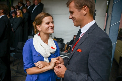 Aikštėje bei klausantys Mišių transliacijų sutuoktiniai visoje Lietuvoje buvo pakviesti susikabinti už rankų, padėkoti Dievui už savo vyrus/žmonas ir taip atnaujinti Santuokos sakramento metu duotus pasižadėjimus.