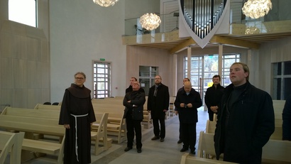 Vėliau kelionės maršrutas tęsėsi į Klaipėdos Taikos Karalienės bažnyčią, kunigai buvo supažindinti su jos istorija.