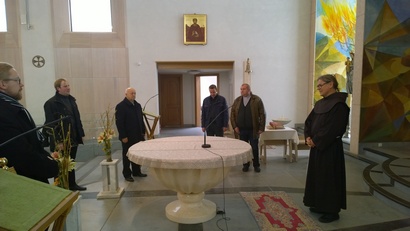 Pirmiausia kunigai lankėsi VŠĮ Šv. Pranciškaus onkologijos centre, kur atvykusius dvasininkus pasitiko kun. Benediktas Jurčys OFM. Jis supažindino su Šv. Pranciškaus Asyžiečio koplyčios ir Onkologijos centro istorija, aprodė vienuolyno patalpas.
