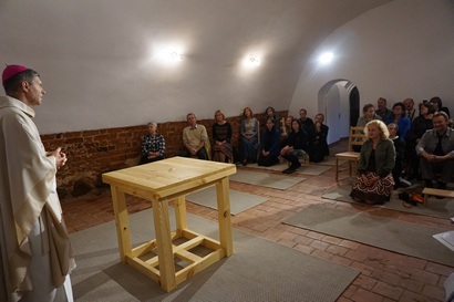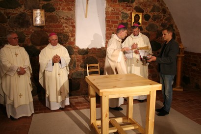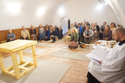 „Te Viešpats palaimina šią ypatingą erdvę, tarnausiančią maldai“, – sakė arkivyskupas, liturgijos pradžioje pašventinęs koplyčią, o vėliau, po bendruomeninių maldavimų, – ir koplyčios altorių. Šis altorius – tai ypatinga dovana arkivyskupijai, jos sielovados darbuotojams – jį savo rankomis pagamino ir padovanojo Pravieniškių pataisos namuose kalintys nuteistieji.
