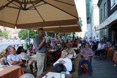 Po susitikimo kavinėje daug žmonių dar užsuko ir į arkivyskupijos kiemelį pasiklausyti gyvos klasikinės muzikos. Daugelį pradžiugino netikėtas Kauno ganytojų atėjimas ir palaiminimas – jie atėjo dar pabūti su žmonėmis jubiliejinių renginių bendrystėje po nelengvos simpoziumo dienos.