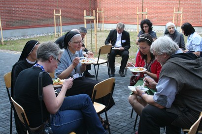 Po susitikimo kavinėje daug žmonių dar užsuko ir į arkivyskupijos kiemelį pasiklausyti gyvos klasikinės muzikos. Daugelį pradžiugino netikėtas Kauno ganytojų atėjimas ir palaiminimas – jie atėjo dar pabūti su žmonėmis  jubiliejinių renginių bendrystėje po nelengvos simpoziumo dienos.