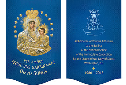 Šiluvos koplyčios nacionalinėje Vašingtono bazilikoje 50-mečiui paminėti – vėliava su Šiluvos Dievo Motinos atvaizduSpalio 9 d. nacionalinėje Vašingtono Švč. M. Marijos Nekaltojo Prasidėjimo bazilikoje bus minimas joje įkurtos Šiluvos koplyčios 50-metis. Šiluvos koplyčiai šios sukakties proga Kauno arkivyskupas metropolitas Lionginas Virbalas padovanojo vėliavą su Šiluvos Dievo Motinos atvaizdu. Vėliavą sukūrė dailininkė Silvija Knezekytė.