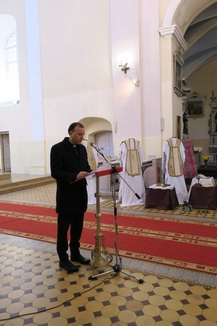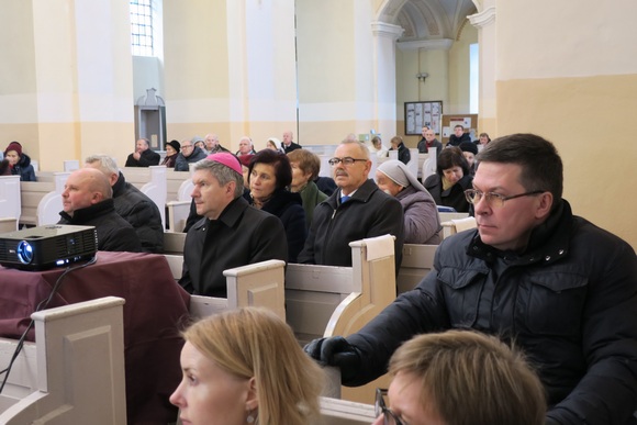 Po šv. Mišių sveikinimo žodį tarus Raseinių sav. merui Algirdui Griciui, bažnyčioje prasidėjo istorinė konferencija. Joje istorine vyskupystės kelio apžvalga savo pranešime pasidalijo Žemaičių vyskupystės muziejaus Varniuose skyriaus vedėjas Antanas Ivinskis. Savo knygą „Raseinių dekanato istorija“ pristatė Raseinių Marcelijaus Martinaičio viešosios bibliotekos vyr. bibliotekininkas Jonas Brigys. Pranešimą apie sakralinį Raseinių krašto paveldą skaitė muziejininkė Lina Kantautienė.