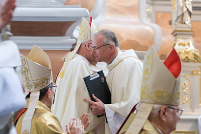 Užbaigiant Eucharistijos liturgiją ir prieš suteikiant ganytojiškąjį palaiminimą, nuoširdžiais plojimais sutiktą apaštališkojo nuncijaus perduotą Šventojo Tėvo Benedikto XVI sveikinimą arkiv. L. Bonazzi palydėjo savo žodžiais pasveikintam ganytojui.