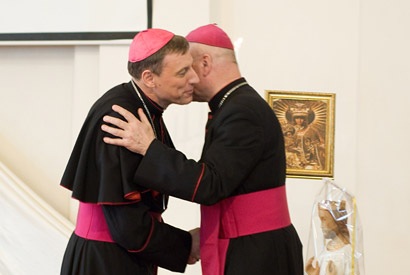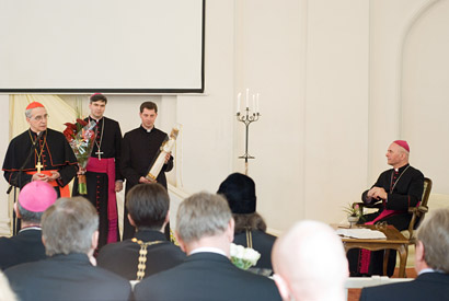 Lietuvos Vyskupų Konferencijos vardu jos Pirmininką pasveikinęs LVK vicepirmininkas kard. A. J. Bačkis padėkojo už tikrą Prisikėlusiojo Kristaus liudijimą, tiesos apie Dievą, žmogų, šeimą, socialinį teisingumą skelbimą, pasigėrėtiną drąsą.