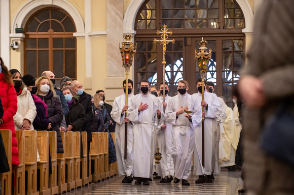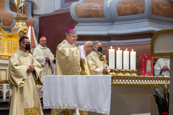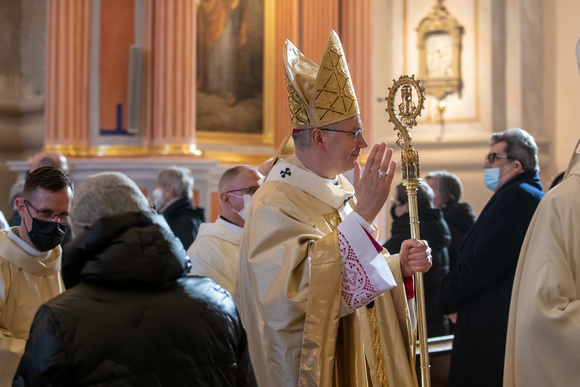 Visa švenčianti bendruomenė buvo pradžiuginta arkivyskupo pasveikinimo ir šviesos iš pačių aukštybių, kai vėjuotą, apniukusią vasario dieną per šių iškilmių valandą saulė netikėtai nušvietė vyskupijos katedrą.