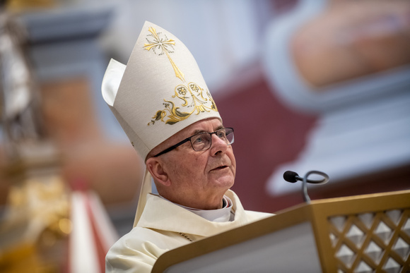 „Prisikėlęs Jėzus apaštalo Petro net tris kartus klausė: „Simonai, Jono sūnau, ar myli mane?“ Šį klausimą kunigystės ir vyskupystės šventimų metu girdėjo ir mūsų jubiliatas. Šiandien dėkojame Dievui, kad jo atsakymas tebėra didelis dėmesys Eucharistiniam Jėzui ir rūpestingai atliekamos pareigos“, – sakė kardinolas Sigitas, pakviesdamas malda visuomet remti vyskupų ir kunigų tarnystę, nes ji dažnai pareikalauja to, kas žmogaus pečiams gali atrodyti sunkiai pakeliama.