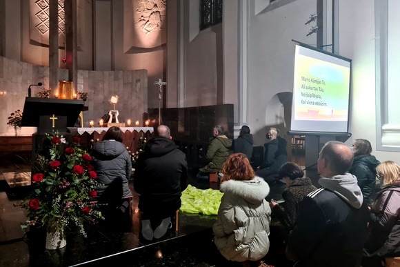 Šeštadienio vakare drauge su seminaristais buvo meldžiamasi seminarijos bažnyčioje apmąstant tai, kad visi, net ir patys silpniausi, esame kviečiami į misiją. Taip pat šį vakarą šlovinimo metu dalyviai buvo pakviesti atiduoti savo silpnybes, sunkumus, problemas Viešpačiui. Apie paskutinę kerigmos temą – apsisprendimą už Jėzų – kalbėjo evangelizacinei ir misijinei tarnystei Kauno arkivyskupijoje paskirtas Gailestingumo misionierius iš Slovakijos kunigas Peteris Hertelis CSsR. Jo mokymą užbaigėme bendra malda – apsisprendimu už Jėzų kaip mūsų gyvenimo Viešpatį ir Gelbėtoją.