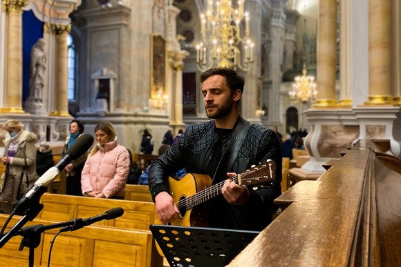 Ypatinga padėka šv. Mišiose giesme tarnavusiam Kauno Gerojo Ganytojo parapijos katechetui Matui Kauniečiui.