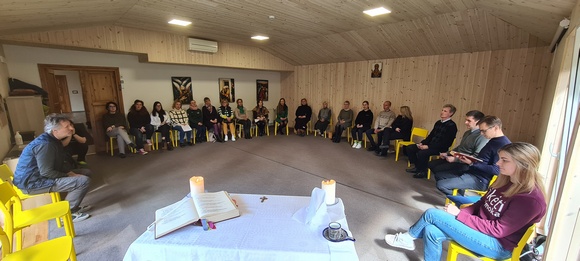 Balandžio 11 d. daugiau kaip dvi dešimtys jų susirinko jėzuitų namuose Kulautuvoje, pavasariškai atgimstančio gamtos grožio kampelyje tarsi su gyvu „Laudato siʼ“ už lango... Ir liko dėkingi už dovanotą ramybės, taikos laiką, galimybę susitikti neskuboje ir drauge būti, melstis ir klausytis kunigo dominikono Jokūbo Marijos Goštauto OP mokymo apie santykio „Aš ir Tu“ klausimą dvasiniame gyvenime. Kad žmogui labai reikia dvasinio pagrindo, pasak brolio Jokūbo Marijos, ypač pajutome patirdami karą kaimynystėje, kai žemė tarsi slysta po kojomis.