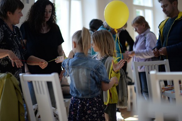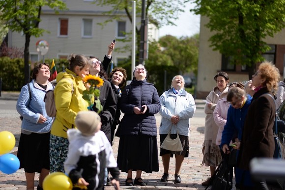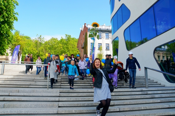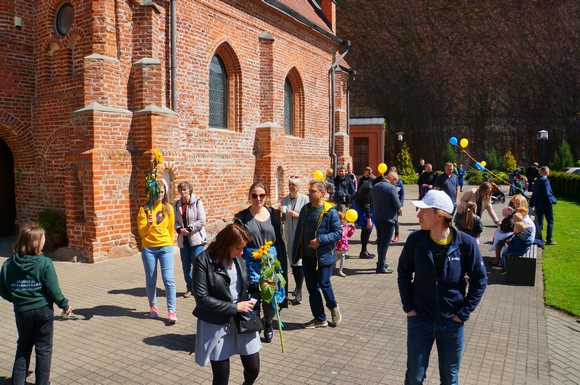 Dalyvius iš tolo buvo galima atpažinti iš mėlynų ir geltonų balionų bei saulėgrąžų žiedų.