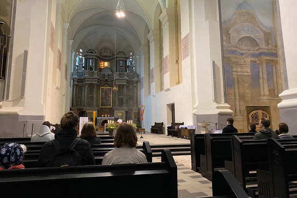 ...O visai netoliese, nuo scenos prie Įgulos bažnyčios, skambėjo Ukrainos karo atgarsiai, ukrainiečių poezijos tekstai ir muzika... Dėl to dar brangesnė Dievo dovana atrodė šis taikos laikas, susitikimo džiaugsmas, kuriuo dalijomės su miesto žmonėmis.