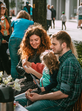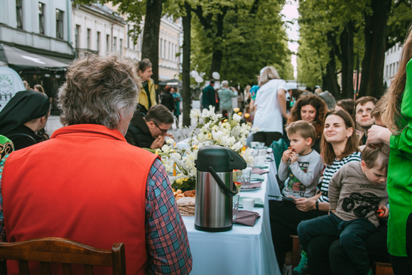 Apie mūsų džiaugsmą susitikti Laisvės alėjoje praeiviams kalbėjo pavasariškai išpuoštas stalas (su ukrainiečių šeimų keptu pyragu!), šypsenos ir vaikų klegėjimas aplink – čia atkeliauta ir su pačiais mažiausiais šeimų nariais.