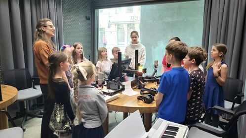 Tą dieną vaikai apsilankė Marijos radijuje, kur Vita Liaudanskaitė-Vaitkevičienė darbuojasi muzikos redaktore, ir drauge su ja iš vakaro pašventintoje naujojoje radijo studijoje padarė šio himno garso įrašą.