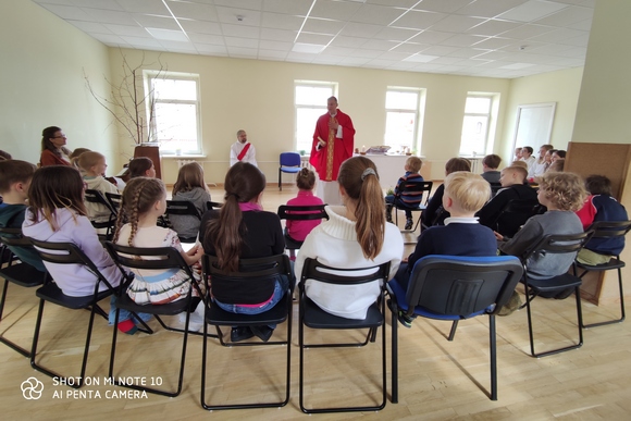 Aptardamas tos dienos Evangeliją apie Kristaus mokinius kaip žemės druską ir pasaulio šviesą, ganytojas su vaikais ieškojo nuostabių druskos ir šviesos savybių, jų nepamainomos būtinybės mūsų gyvenimui.