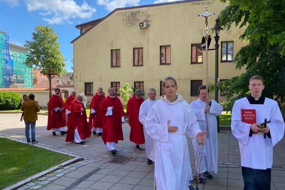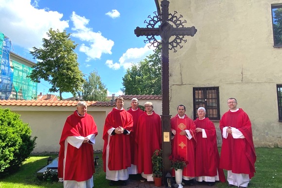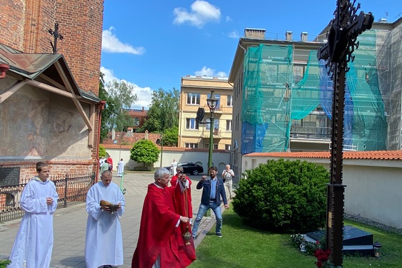 Šį pilną gaivos ir šviesos Šventosios Dvasios Atsiuntimo sekmadienį prie arkikatedros buvo pašventintas atnaujintas kryžius šioms misijoms atminti.