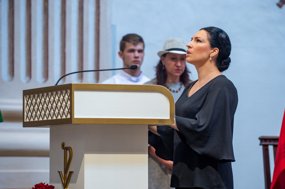 Arkivyskupas Gintaras Grušas sveikino į Kauną švęsti atvykusius ir Eucharistiją koncelebravusius apaštališkąjį nuncijų arkivyskupą Petarą Antuną Rajičių, kardinolus Sigitą Tamkevičių SJ ir Audrį Juozą Bačkį, vyskupijų ordinarus bei kunigus, taip pat visus gausius Eucharistijos dalyvius iš įvairių Lietuvos vietų.